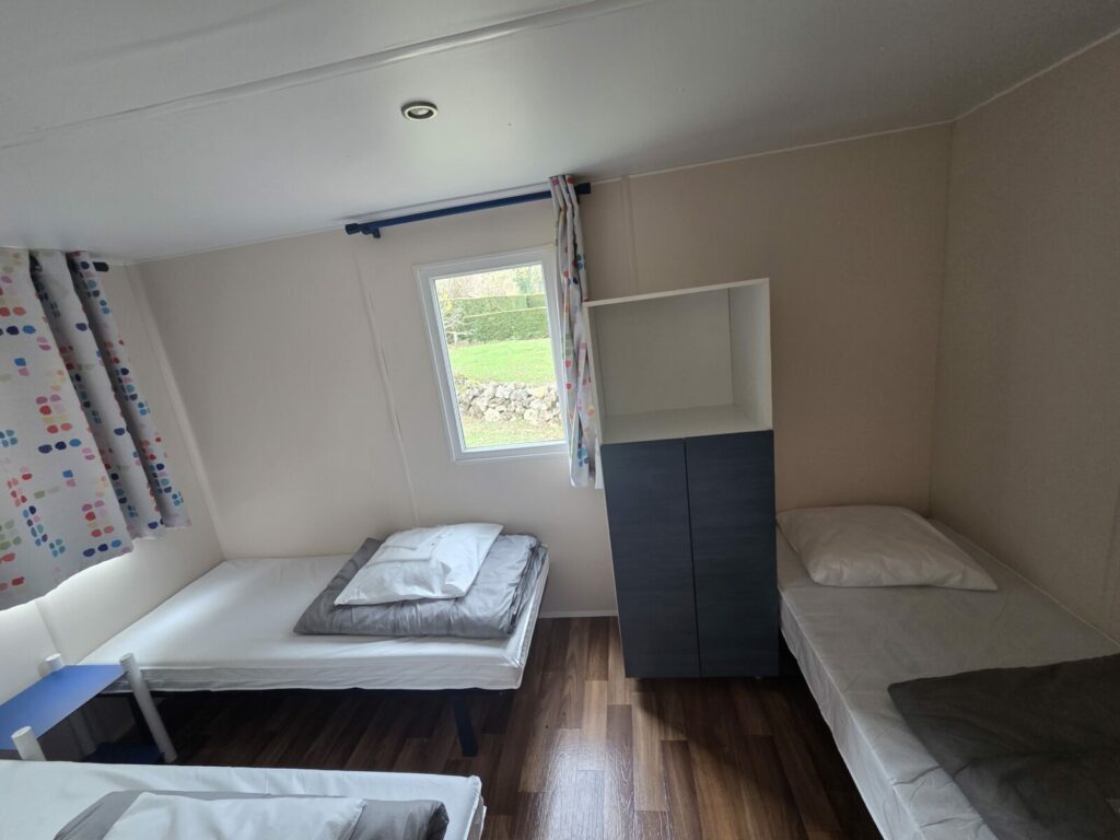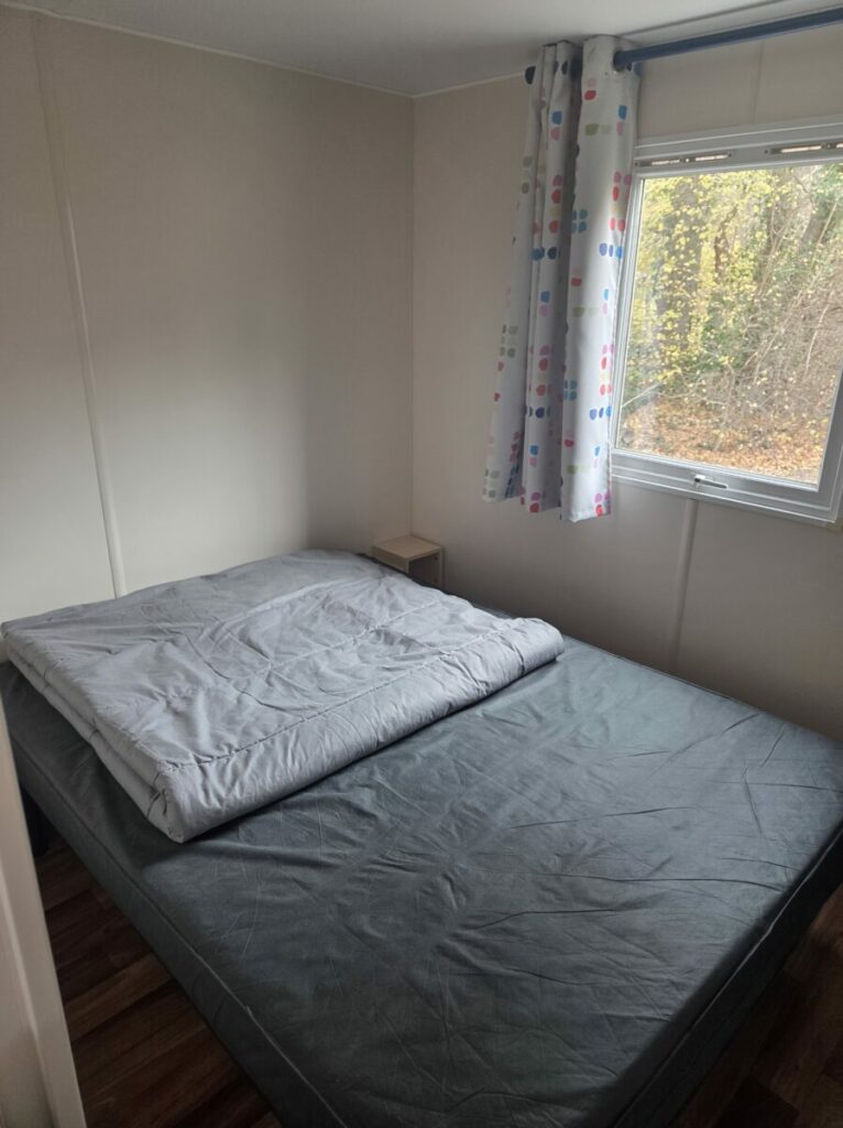 Mobil-home IRM 5 personnes 30 m² avec terrasse couverte. 2 Chambres, 5 Personnes (1ère chambre 1 Lit de 140 x 190, 2ème chambre 1 lit de 140x 190 et 1 Lit de 80 x 190), Couettes et Oreillers fournis